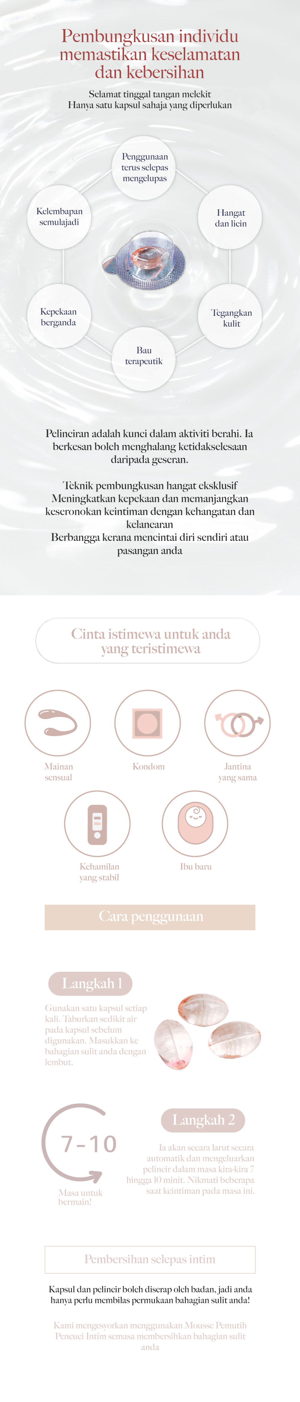 - Pembungkusan habanya sepadan dengan suhu bahagian intim
